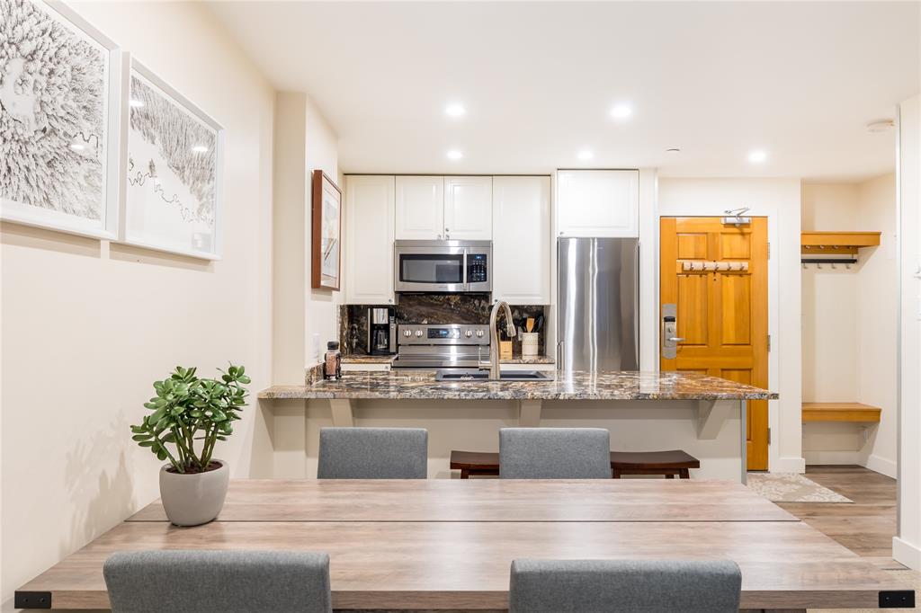 $1,395,000- Remarks: Exceptional ski-in/ski-out opportunity at The Aspens on Blackcomb! Aspens 116 is a top revenue-producing property, ideally positioned in a prime, quiet location within the building while offering effortless access to the Blackcomb Gondola and the incredible valley trail system. The gym, pool, and hot tubs are conveniently located just down the hall. A comprehensive remodel completed in December 2019 features new appliances, updated cabinetry, custom granite and tile work, plush carpeting, and recessed dimmable LED lighting throughout. The spa-inspired walk-in shower includes a built-in bench and its own toe-kick heating system for ultimate comfort. Unwind on your spacious private deck, surrounded by a peaceful forest setting — perfect for afternoon BBQs any time of the year. The couch pulls out to a Queen size bed so lots of room for a couple of guests. Traveling with a furry friend? The Aspens welcomes pets for owners only. Savvy buyers already know that The Aspens is one of Whistler’s premier buildings for strong fiscal management and outstanding owner satisfaction. Even better, hot water, electricity, gas, cable, and internet are all included in the monthly HOA fee. Aspens 116 is a five-star Whistler investment. These first floor units rarely come up for sale! Contact us today for more information or to schedule your private showing.